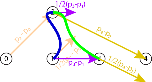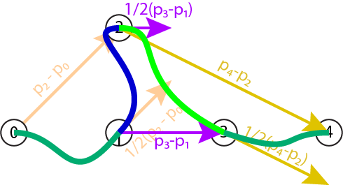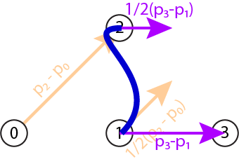One counter-intuitive thing is that for the list of 4 points, , , , and , the curve actually connects and . The other points and are only used to compute the derivatives.