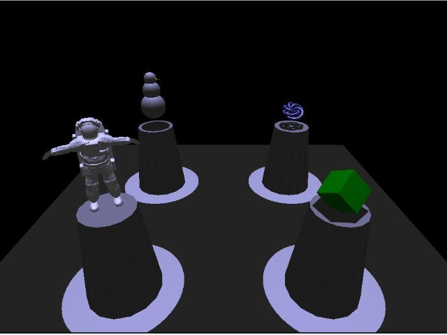 In this part of the assignment, we give you some starter code for a “museum.” It has pedestals to display things, spotlights to shine on them, and cameras to look at each thing in more detail. The only problem - this museum doesn’t have much on display. We say “space-age” because the objects magically float above their pedestals.